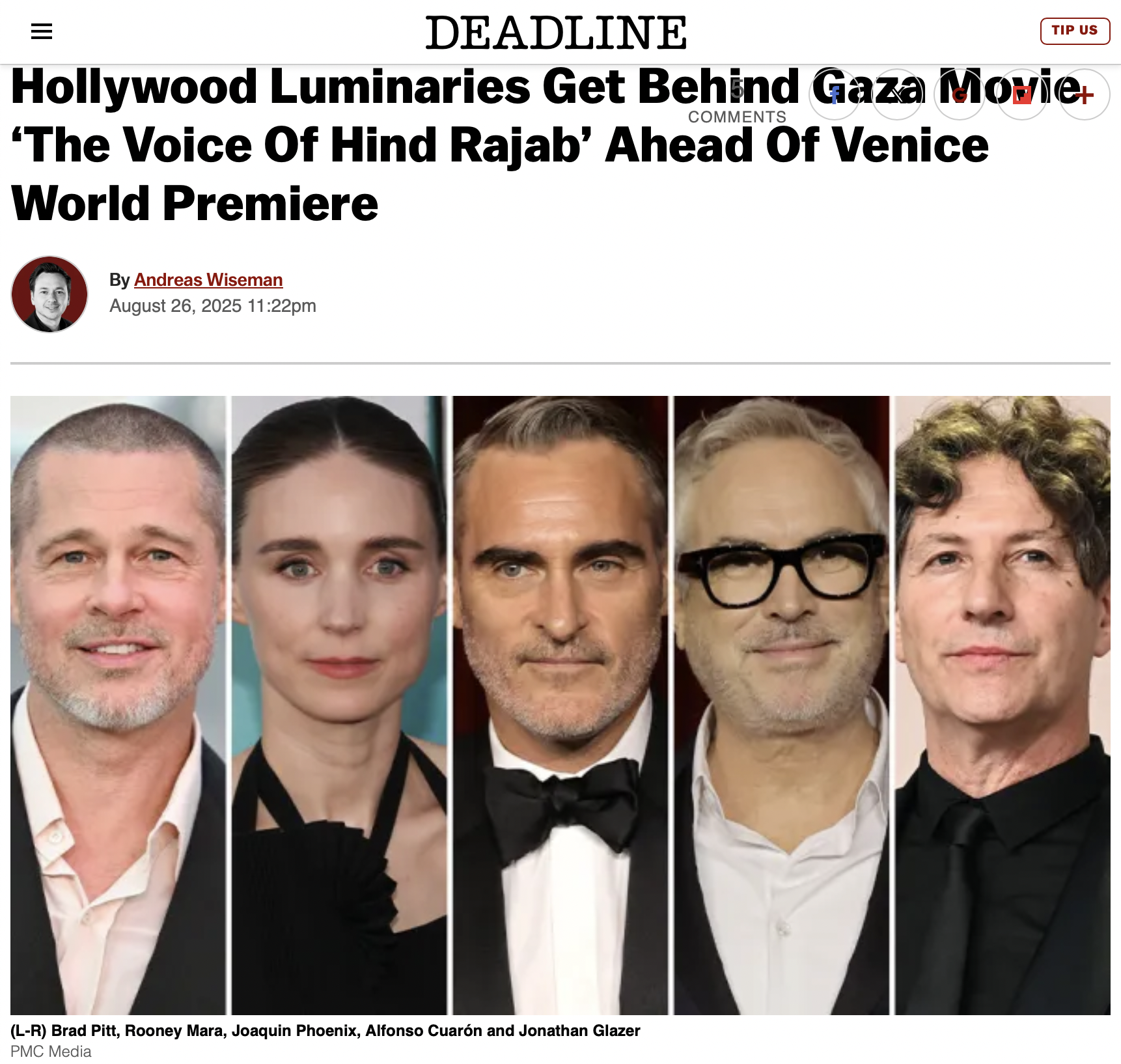 https://deadline.com/2025/08/brad-pitt-joaquin-phoenix-join-gaza-movie-voice-hind-rajab-1236498170/